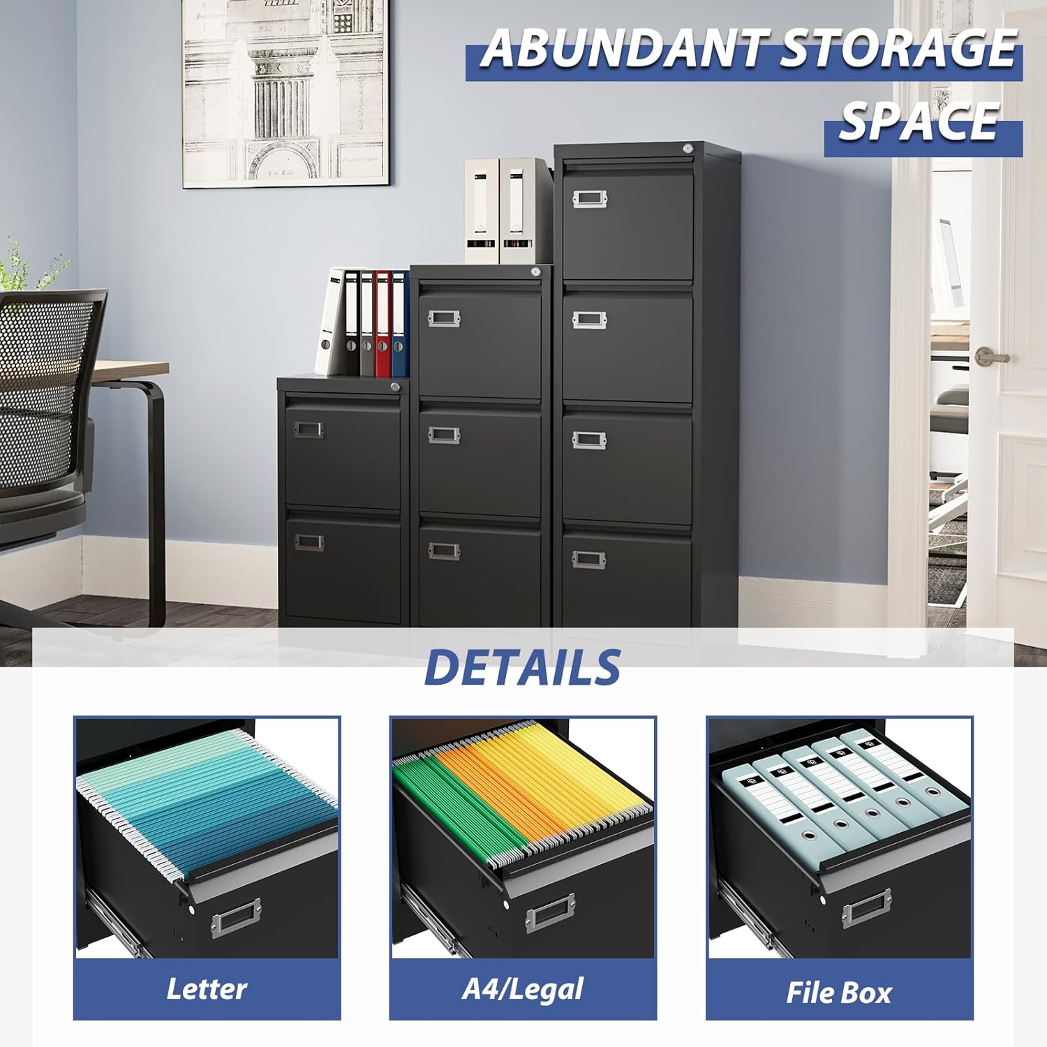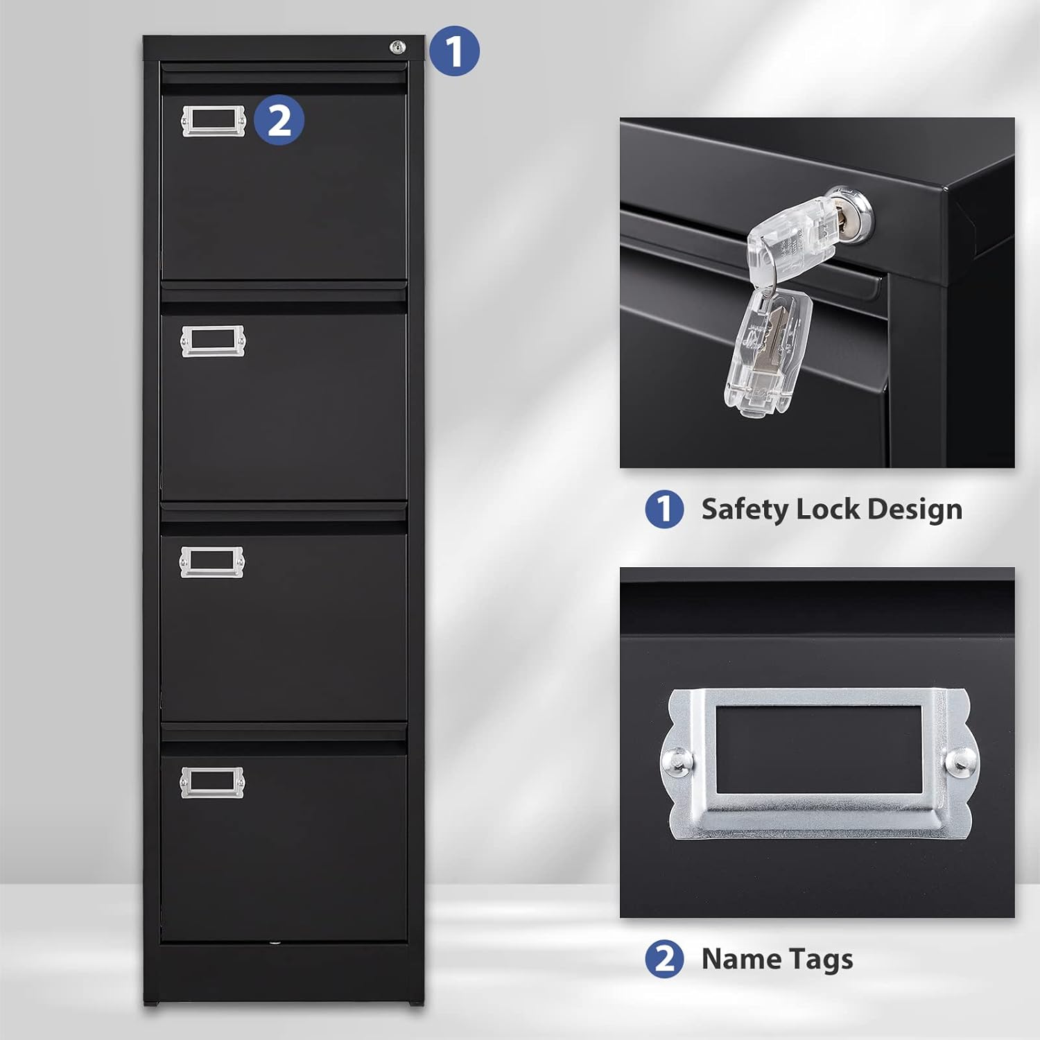 Featuring four spacious drawers, this metal vertical file storage cabinet provides ample space to store all your legal and letter-sized documents. The built-in lock ensures the security of your sensitive files, giving you peace of mind.