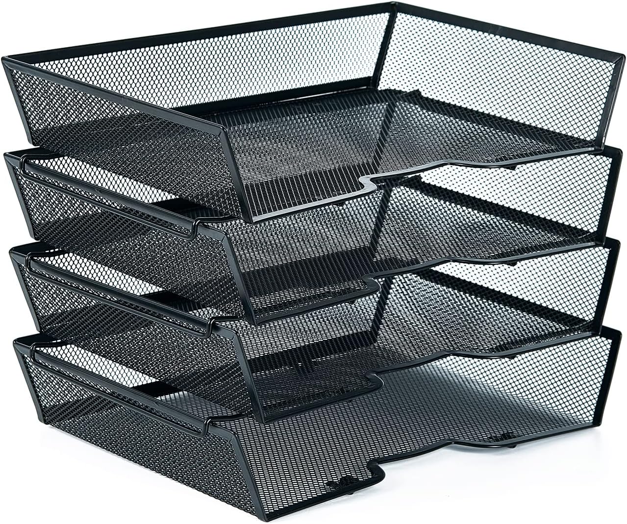 SETTFRFE 4 Tier Metal Mesh Desk Organizer-Stackable Letter Trays for Office Supplies,Black File Storage System with Reinforced Edges